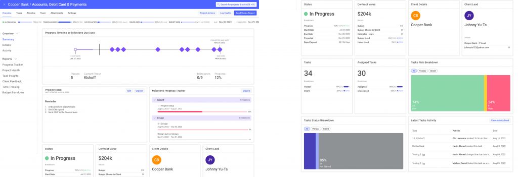 A centralized hub that instantly orients teams with a unified, data‑driven view of project health, milestones, risks, and next steps.